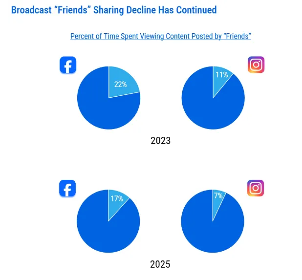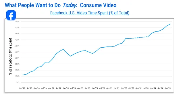 The first major takeaway is that video has become the main focus on Facebook, with people spending more time watching video content. According to Meta’s data, Reels are performing well, while engagement with Facebook Stories and the News Feed is declining. Meta also shared that users send 63 times more private messages than they make public posts, highlighting a wider shift: people are using messaging to connect, and video for entertainment.