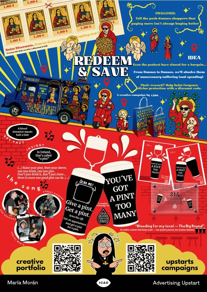 Hola! I’m María. Creative copywriter & art director, expert in thinking, rethinking, and overthinking. After three years at Accenture Song Madrid as a copywriter, I decided life was too easy, so a few months ago I moved to Dublin... and it’s been one hell of an adventure so far!